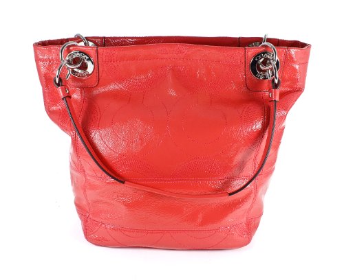 Pretty Coach Op Art Cs are artfully stitched all over this simple and fun Alex Coach patent leather shoulder tote.