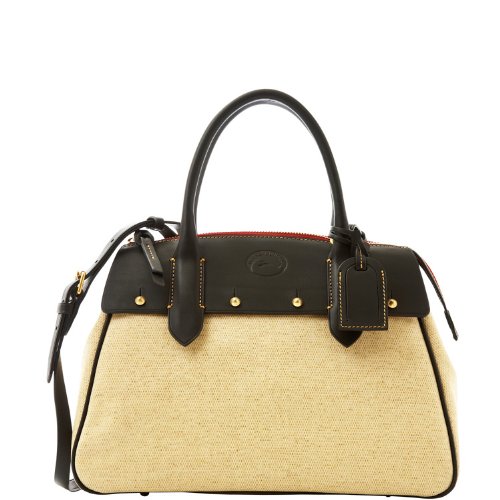 Dooney & Bourke Small Wilson, Panama. One inside zip pocket. Two inside pockets. Cell phone pocket. Inside key hook. Handle drop length: 5". Strap drop length 17.5". Zipper closure. Lined. Feet.