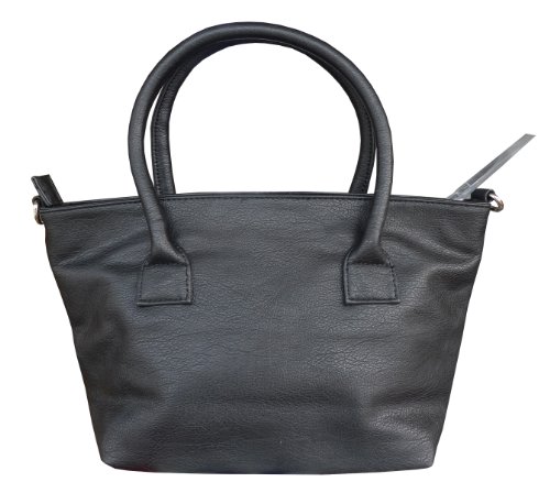 I purchased this handbag as a gift. The word leather caught my eye and I did not understand that the material of the bag is actually a suede-like faux-leather. However, it is lightweight and my sister in law really liked it. It is large enough to hold a wallet and cell phone and other essentials, but small enough to place inside of a shopper tote or brief case.