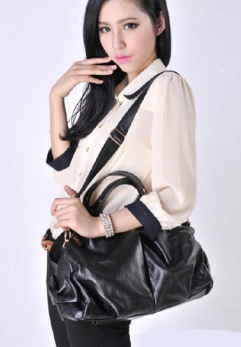 Made of soft genuine leather. Simple and pretty gathered shape. Gold-tone hardware and studs.